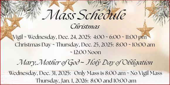 The parish office is closed on Holy Days and National Holidays.